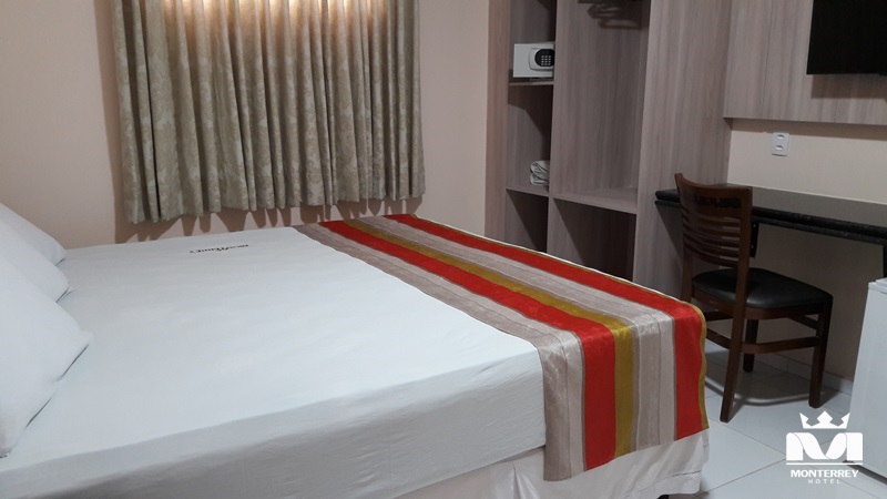Com uma estrutura aconchegante, em um hotel de caráter e ambiente tranquilo e familiar, seu conforto, segurança e bem estar são prioridades do Monterrey Hotel, proporcionando satisfação e tranquilidade. Todos os apartamentos estão equipados obedecendo o mesmo padrão, com cama box, central de ar,cofre, frigobar, telefone, internet sem fio ,TV Led a cabo, além do hotel dispor de estacionamento exclusivo para hóspedes.